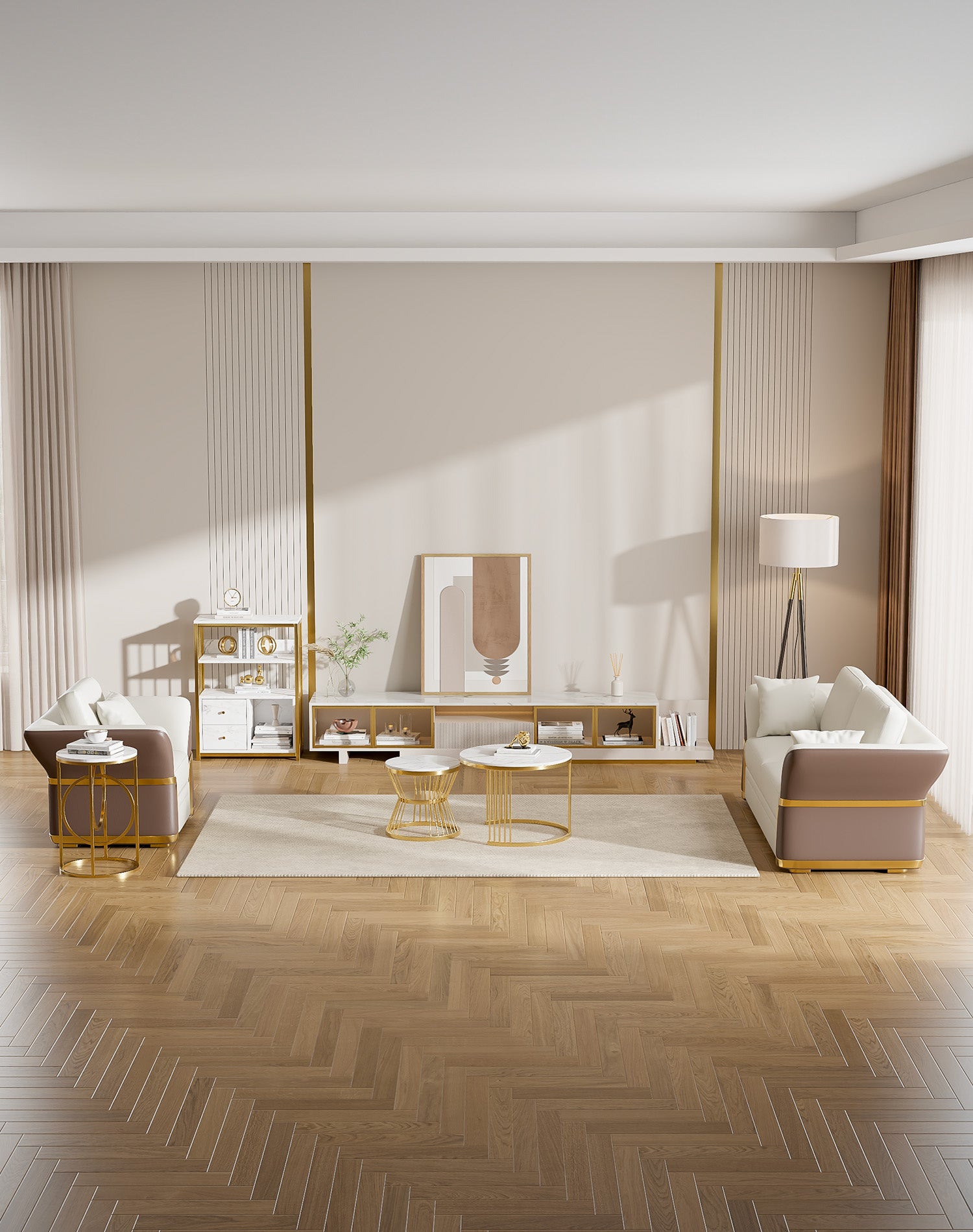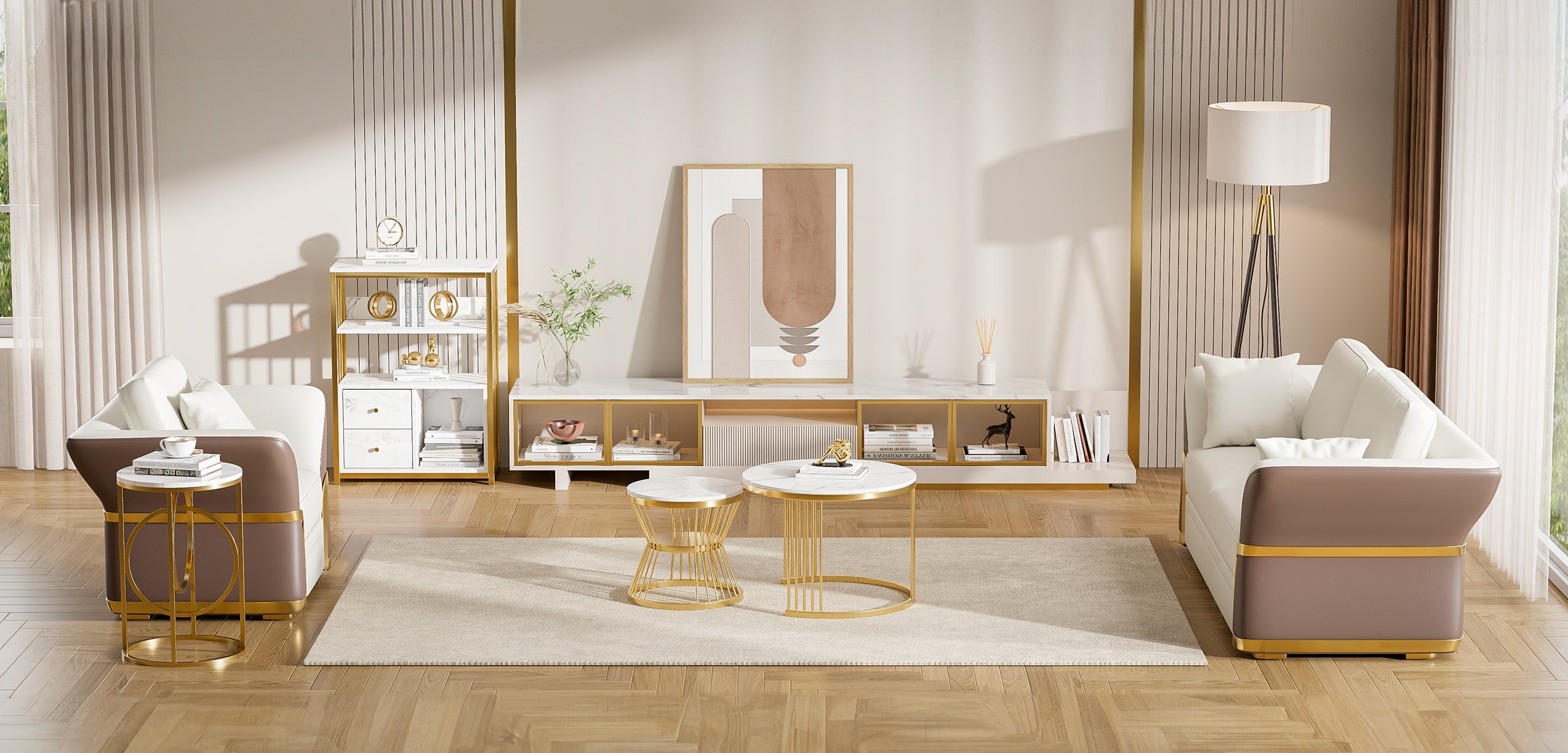- White and brass PU leather luxury