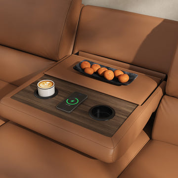 Integrated Power System: One outlet powers the entire sofa, from reclining controls to USB and Type-C charging ports on the armrests, plus wireless charging on the drop-down tray, keeping all your devices powered effortlessly.