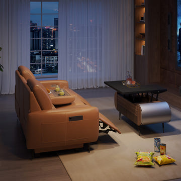 Integrated Power System: One outlet powers the entire sofa, from reclining controls to USB and Type-C charging ports on the armrests, plus wireless charging on the drop-down tray, keeping all your devices powered effortlessly.