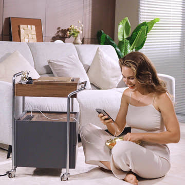 Flexible Power Hub: Featuring a built-in power strip with 4 AC outlets, 2 USB ports, and 1 Type-C port, this side table provides ample charging options with its ten-foot (3-meter) cable. The lockable casters make it easy to move the table, ensuring hassle-free charging for multiple devices wherever you need it.