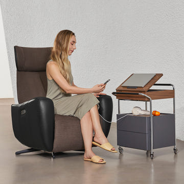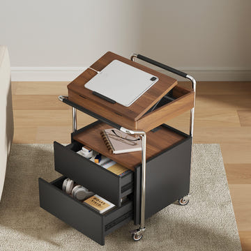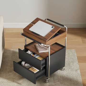 This multifunctional side table combines modern convenience and sleek design, featuring ample storage, a built-in power hub, and an angle-adjustable lift-top. Its flexible layout and easy mobility make it ideal for both work and relaxation.