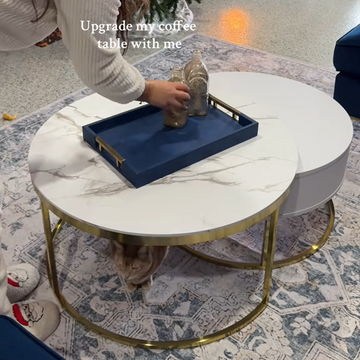 Designed for both functionality and style, this coffee table set is a versatile addition to any living space. Featuring a marble-inspired tabletop and sturdy gold metal bases, this nesting design coffee table set elevates the aesthetic of your room with sophistication and practicality.