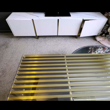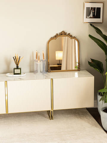 Crafted from ultra-durable honeycomb board and polished brass-tone metal, it’s sturdy enough for daily life but sleek enough to elevate your space.