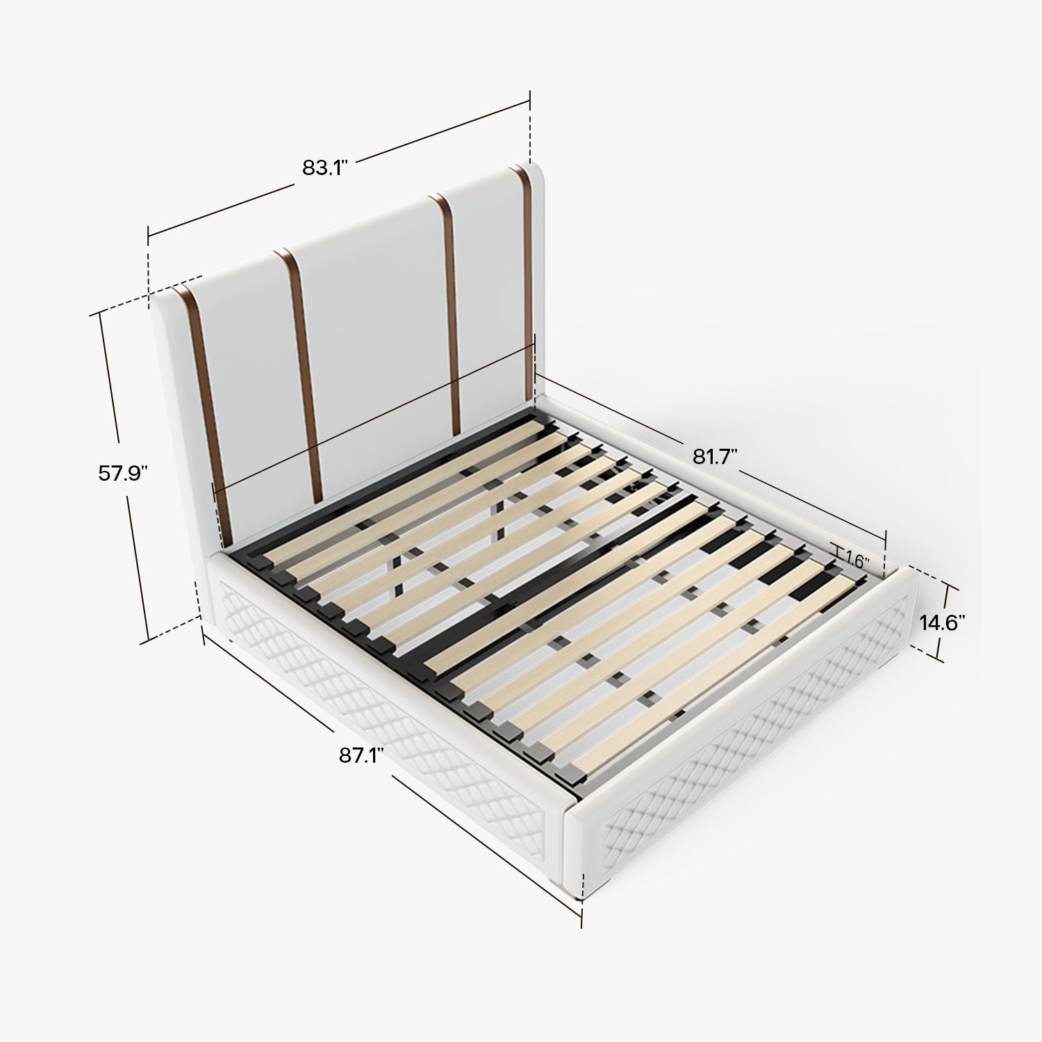 As a perfect blend of luxury and functionality, this bed combines elegance and comfort with its unique and thoughtful design features. Crafted from PU leather, brass-colored plastic legs and foam, this bed is designed to elevate your bedroom experience and add a touch of luxury.