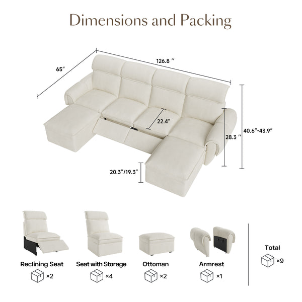 CloudCubo 4-Seat Modular sofa Sectional Reclining Sofa With Ottoman