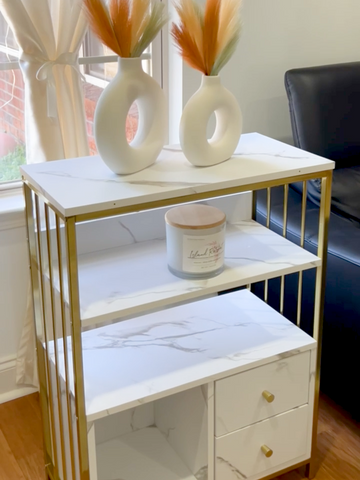 ꔷ 2 shelves, 2 drawers and 1 open compartment cater to all your storage needs.