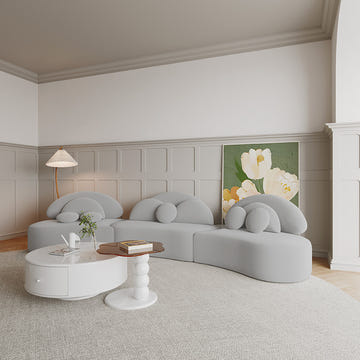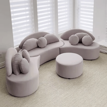 Adjustable Curved Design: The sofa's curved design allows easy adjustment of the arc size, complemented by a movable ottoman for versatile seating options.