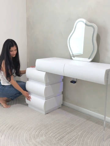 The vanity table is perfectly sized for the bedroom or guest room, it offers ample storage and a spacious tabletop. Five drawers provide room for cosmetics, brushes, or even small garments, like hosiery or neckties. When you need extra tabletop space, this vanity desk can also be satisfied.