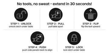 Easily extend the hidden panel for instant extra space, perfect for accommodating guests during mealtime.