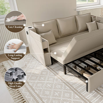 Built to withstand years of use, the robust three-section iron frame ensures stability during frequent transformations from sofa to bed. The premium PU leather is both fire-retardant and waterproof, resisting spills, stains, and wear while maintaining its elegant texture. Combined with high-density foam that retains its shape over time, this sofa bed promises lasting resilience, even in busy households.