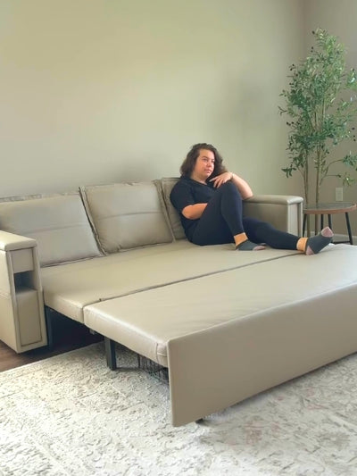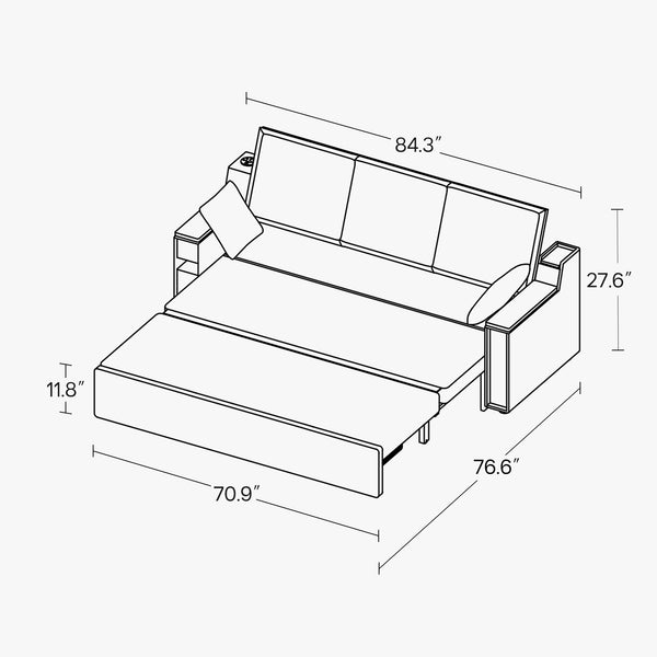 A marvel of versatility, this piece effortlessly transitions from a three-seater sofa to a roomy bed in seconds, perfect for compact living spaces or hosting friends. Each armrest features a built-in storage compartment with a dust-resistant padded cover, ideal for stashing blankets or accessories. Two additional storage boxes provide even more organizational space. The left armrest features a Bluetooth speaker for immersive sound and dual charging ports (Type-C and USB) to keep your devices powered and within arm’s reach. Every detail—from the seamless conversion mechanism to the hidden storage solutions—is thoughtfully crafted to maximize utility without compromising on style.