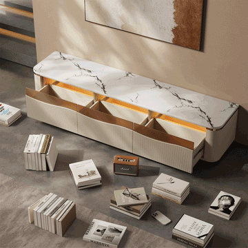 With three drawers, a spacious compartment revealed when extended, and a recessed slot for tablets or remotes, this expandable TV stand keeps your setup neat and effortless.