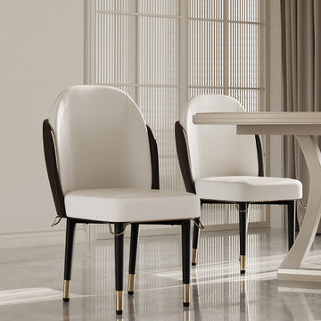 Jackson Modern Leather Set of 2 White Dining Chair with Black Metal Legs