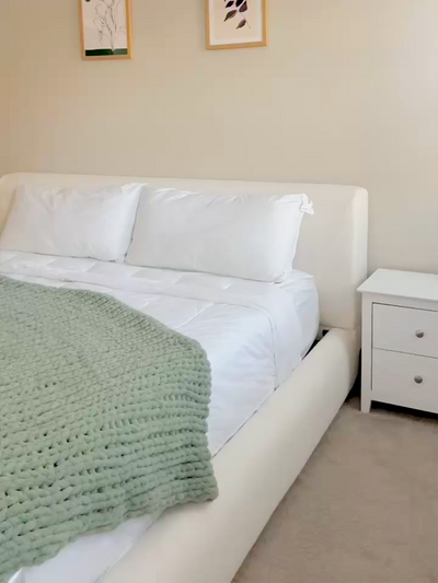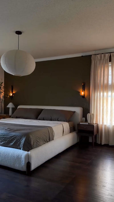 Extra-Thick Upholstered Headboard: The headboard is generously padded with plush upholstery, enhancing back support and comfort. Its curved design perfectly conforms to the natural shape of your spine.