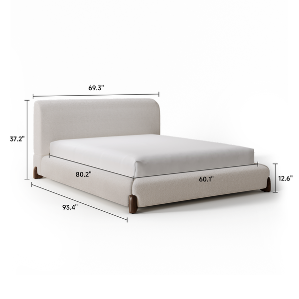 Miya Japandi Upholstered Sherpa Queen/King Platform Bed Frame with Thickness Headboard