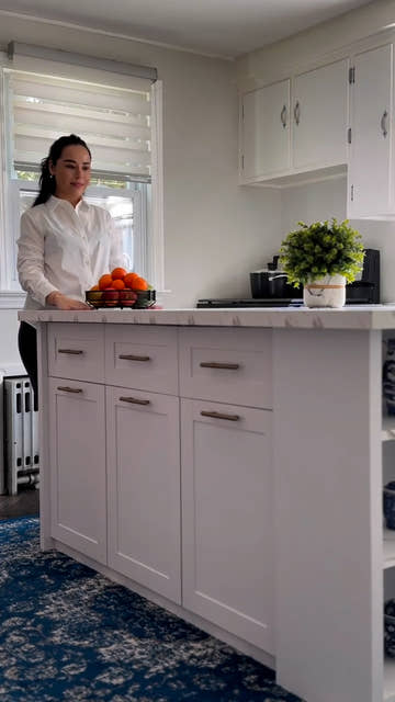 Features three spacious drawers, three cabinets, and an open side shelf for organized and clutter-free storage.