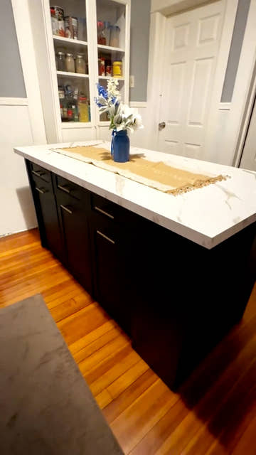 Chic marble-patterned veneer offers wear-resistance and easy maintenance for lasting beauty.