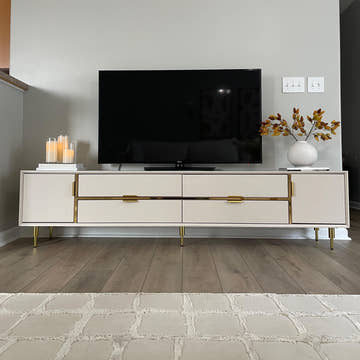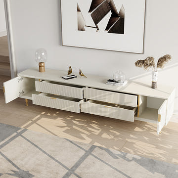 Our TV stand is designed to accommodate most common TV sizes ranging from 32 inches to 70 inches. It can also support larger sizes up to 80 inches, depending on the TV’s design and weight.