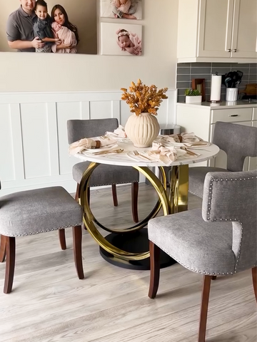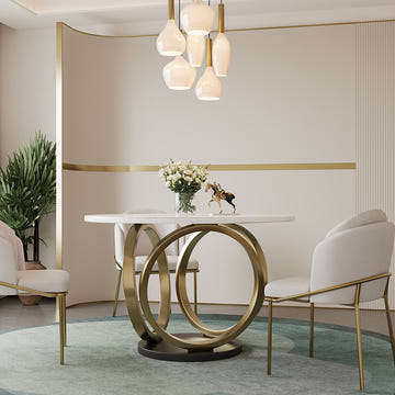 This dining table seamlessly blends luxury style with practical functionality. Crafted from high-quality materials, it provides both durability and timeless appeal. Luxurious design elements enhance its beauty, making it a lasting and elegant choice for your home.