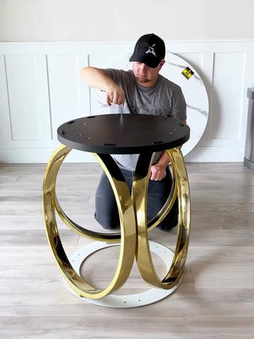 Brass Support Structure: The high-quality brass-colored support structure features a geometric design that adds stability and a touch of luxurious elegance to the table.