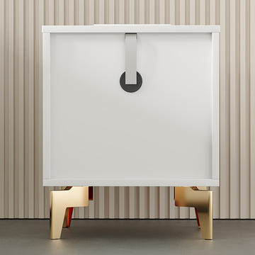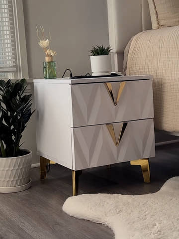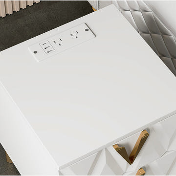 Sophie Common Luxury White 2-Drawer Nightstand with V-Shaped Facet & Gold Pulls