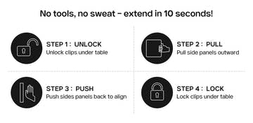Smoothly extend or retract the table in just 10 seconds, no tools required.