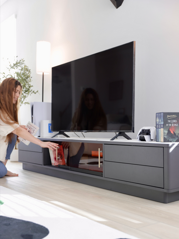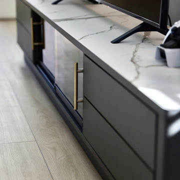 Perfect for contemporary homes, the TV Stand features ample storage and provides stylish ambiance. Crafted from honeycomb board and MDF, it is designed to elevate your living space with its sleek aesthetics and practical functions.