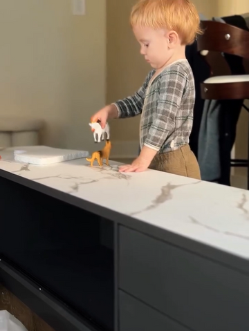 ꔷ Marble-patterned tabletop offers a scratch-resistant surface that is durable and easy to maintain.