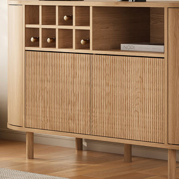 This Japandi sideboard blends rustic elegance with minimalist functionality, bringing style and practicality to your space. It features ample storage and grooved surface details, combining functionality with visual appeal. Crafted from premium MDF and honeycomb board, this sideboard ensures long-lasting durability and timeless charm.
