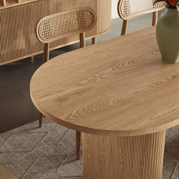 Todd Japandi 63" to 78.7″ 4-6 Seater Extendable Oval Wood Dining Table for Small Living Room