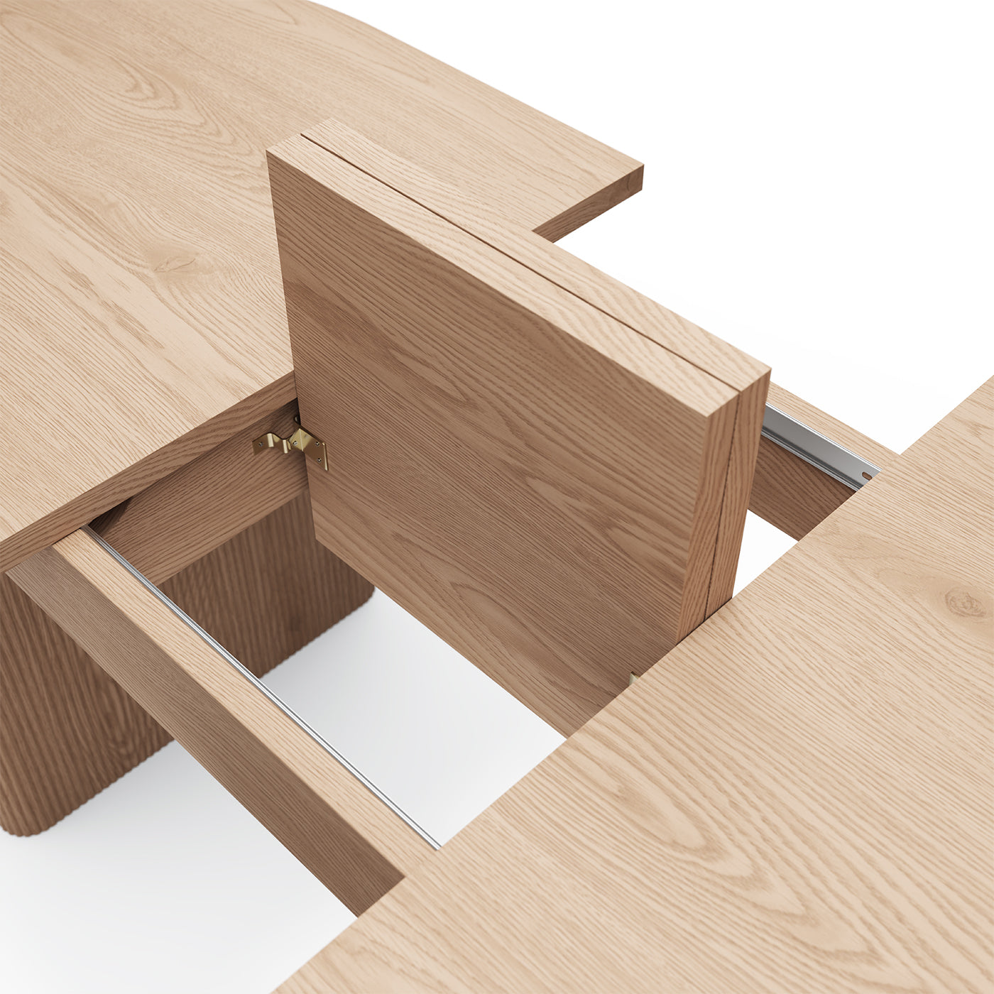Even when fully extended, the tabletop remains perfectly seamless, with precision-aligned panels.